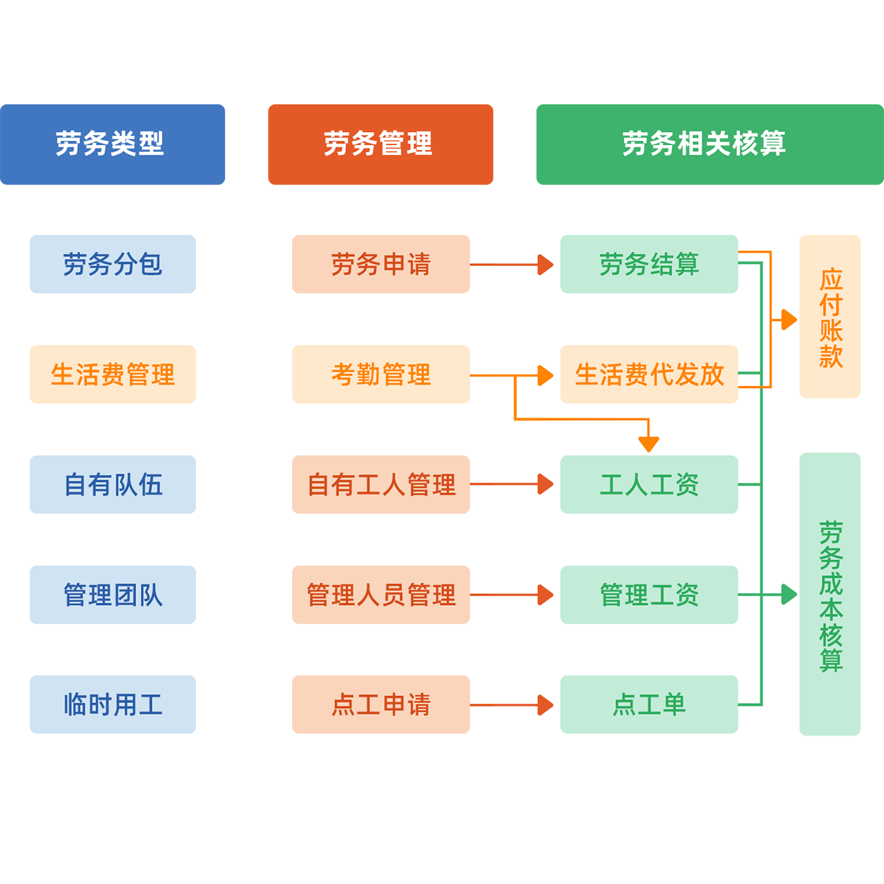 1、规范管理流程:临时用工、分包劳务提前申请确认单价,事中加强考勤,为分包结算、代发生活费提供真实数据,为成本核算提供依据,助力项目形成规范的管理流程; 2、减少劳务纠纷:申请确认单价、考勤确认数量,及时核对并办理结算,可减少劳务纠纷。