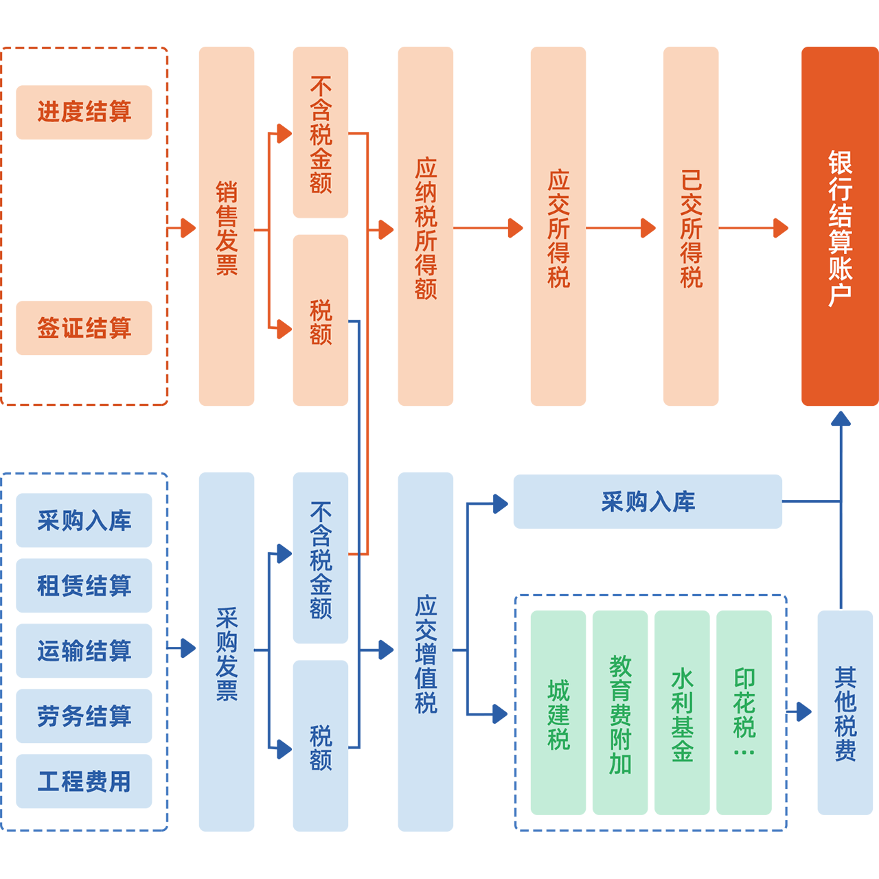 1、加强税务风险控制:用合同、资金、成本、税务四个模块解决税务管理的合同、发票、资金、业务四流合一问题,管控税务风险; 2、提升税务筹划水平:通过税务分析表,适时关注应交增值税、所得税应纳税所得额等核心数据,平衡税负与风险,做好税务筹划。